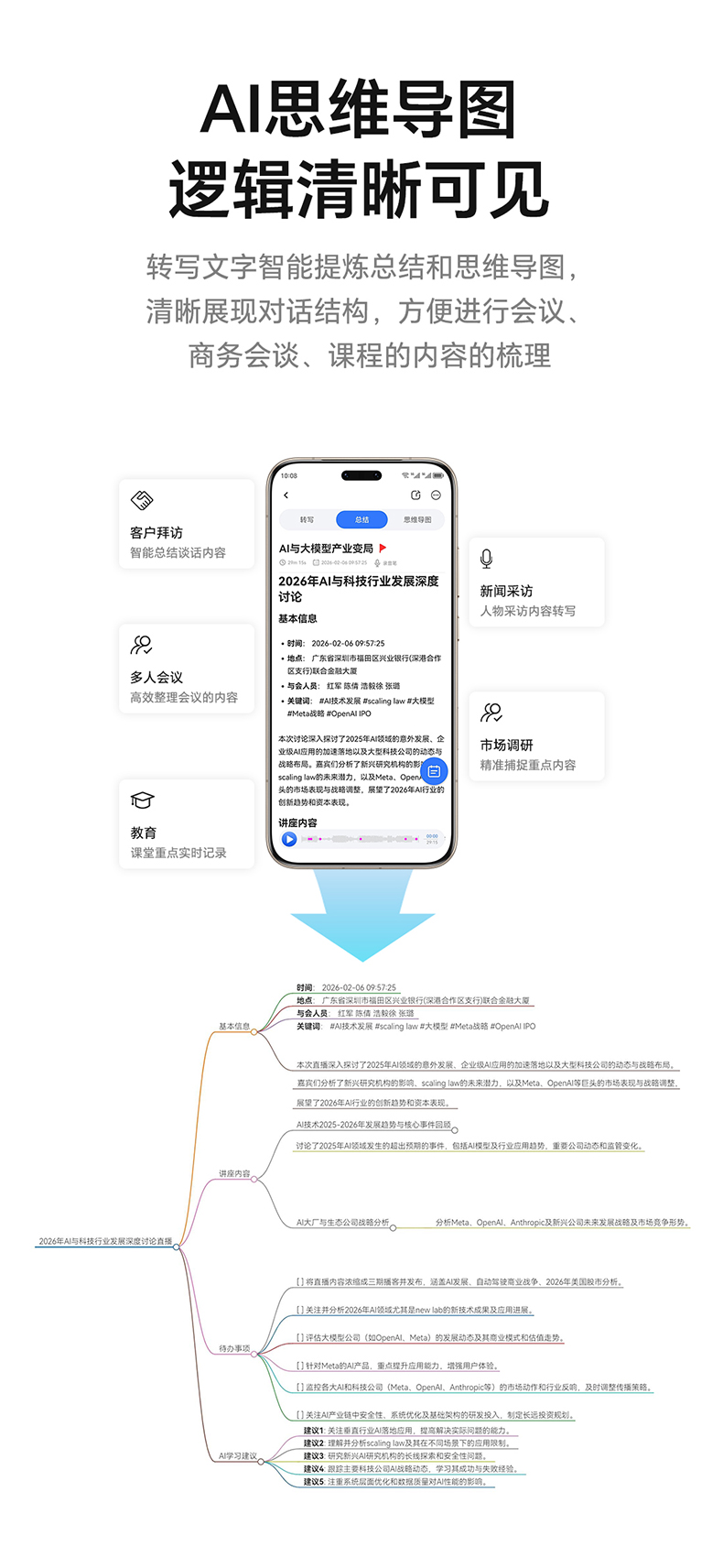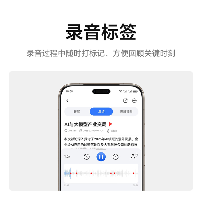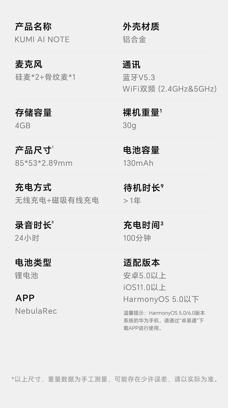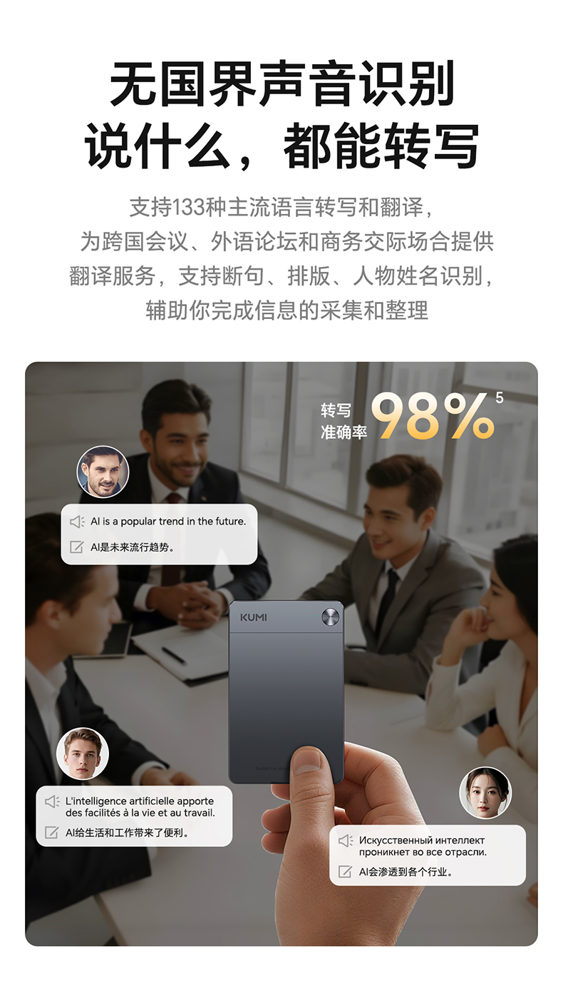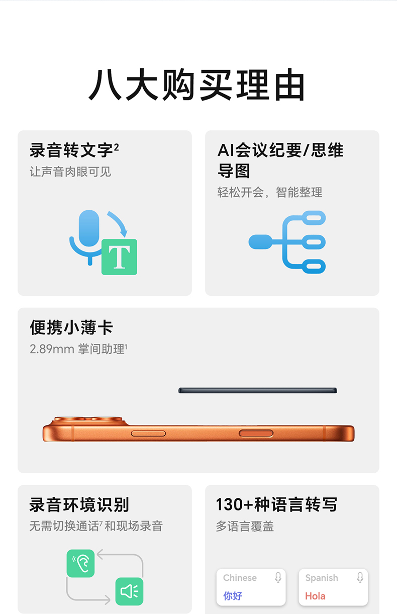 录音转文字 | AI会议纪要/思维导图 | 2.89mm轻薄磁吸设计 | 130+语言转写