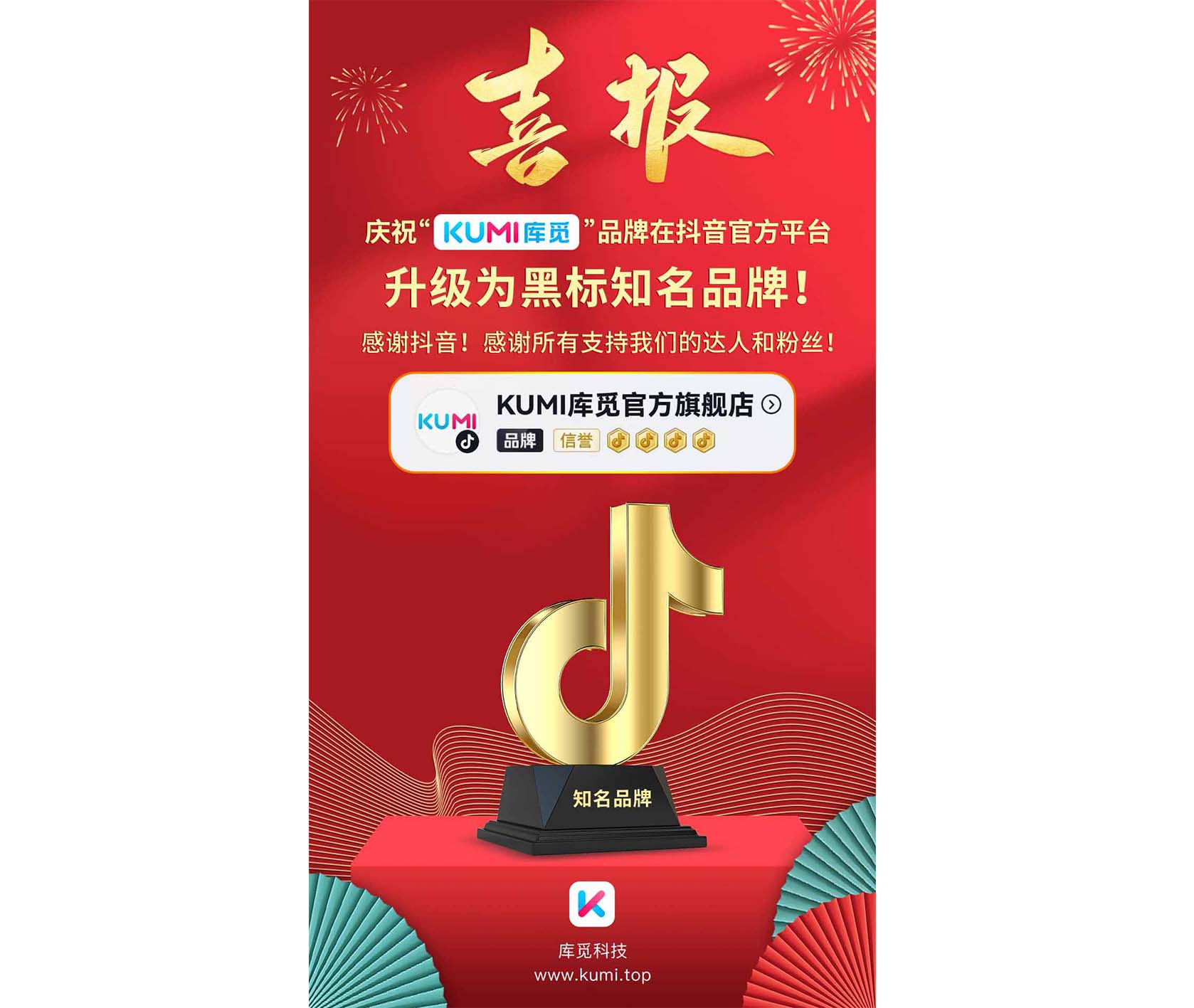 庆祝“KUMI库觅”品牌在抖音官方平台升级为黑标知名品牌官方旗舰店!感谢抖音!感谢所有支持我们的达人和粉丝朋友!...